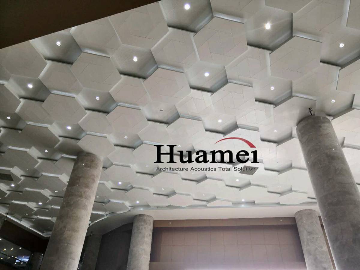重庆市人民医院大厅采用我司新型的拼接悬挂板,它在吸音降噪的同时让空间更加灵动